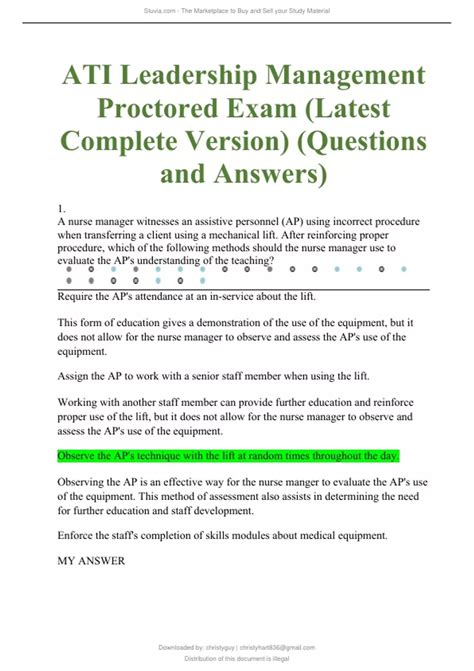 ODJ - Read ATI LEADERSHIP MANAGEMENT PROCTORED EXAM Library Binding Library Genesis